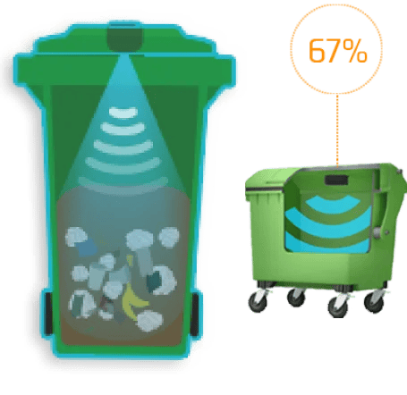 Solution: Sensemech's Smart Bin uses weight sensors and fill-level indicators to transmit real-time data wirelessly.